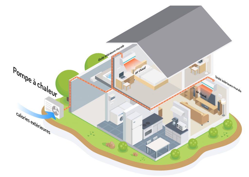 En été, le cycle s’inverse : elle évacue les calories de l’air intérieur pour rafraîchir l’habitation.